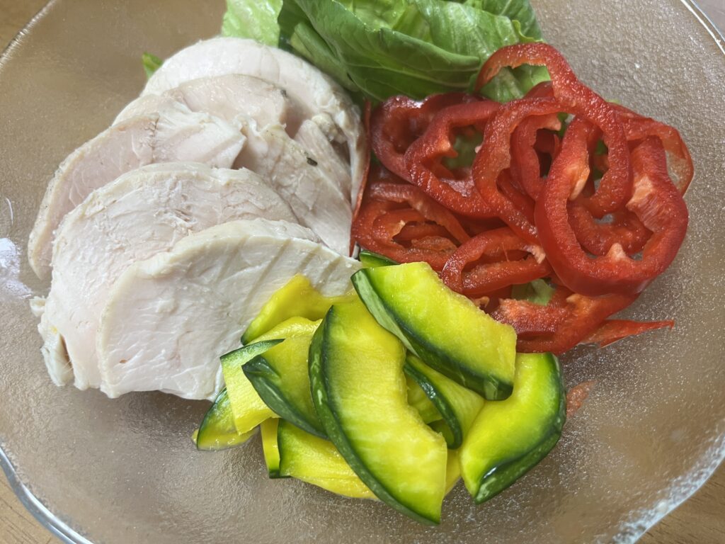 グリーンと黄色があざやかで、サラダが美味しそう〜