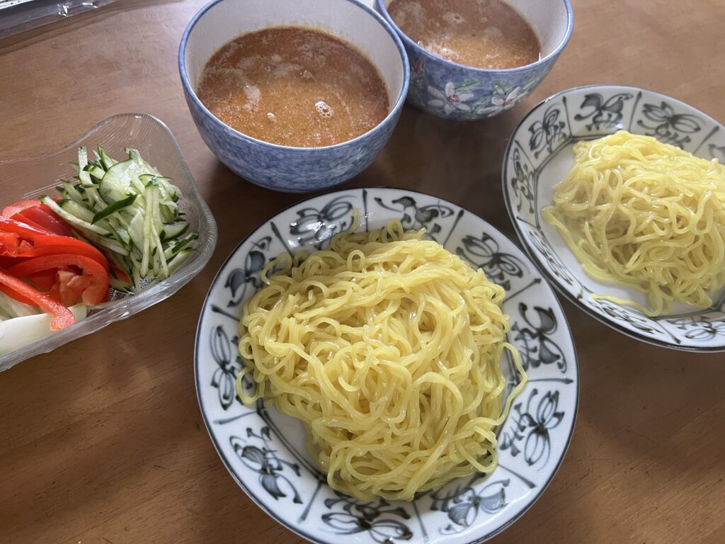 野菜がきらいなjiji(じじ)は野菜を麺に乗せられないので別皿にして、自分一人でいただきました〜