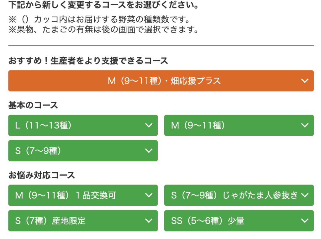 特典付きの入会ではMまたはSの2サイズから選ぶようになってますが、入会後にいつでも変更できます。