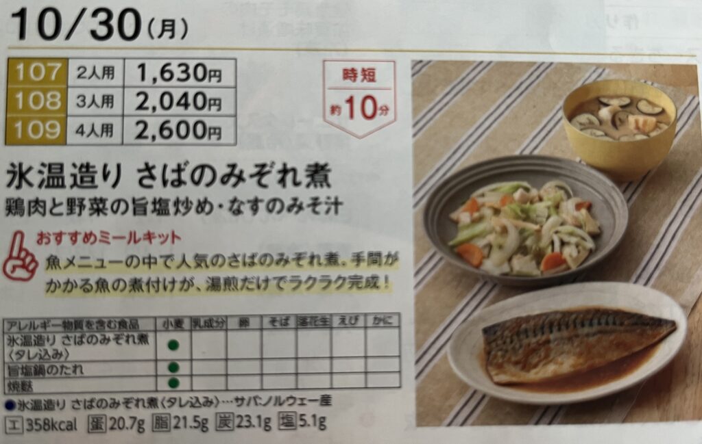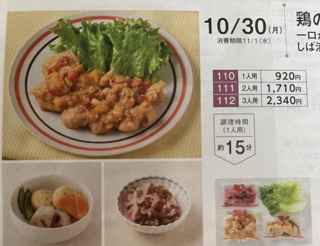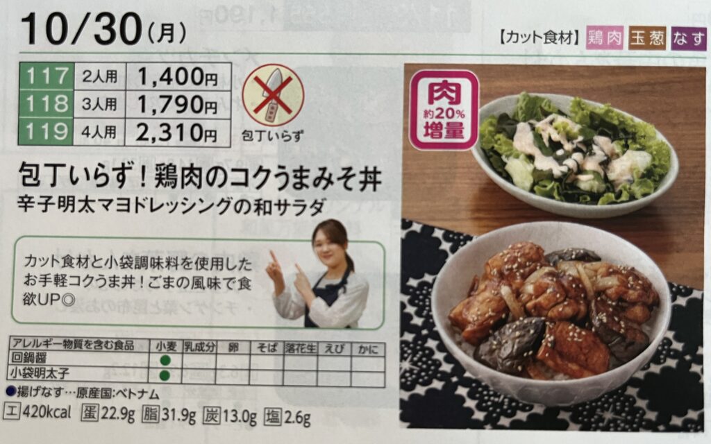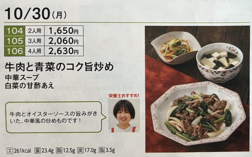 たとえばこの週は10月30日(月)のCut Meal3人用注文すれば、