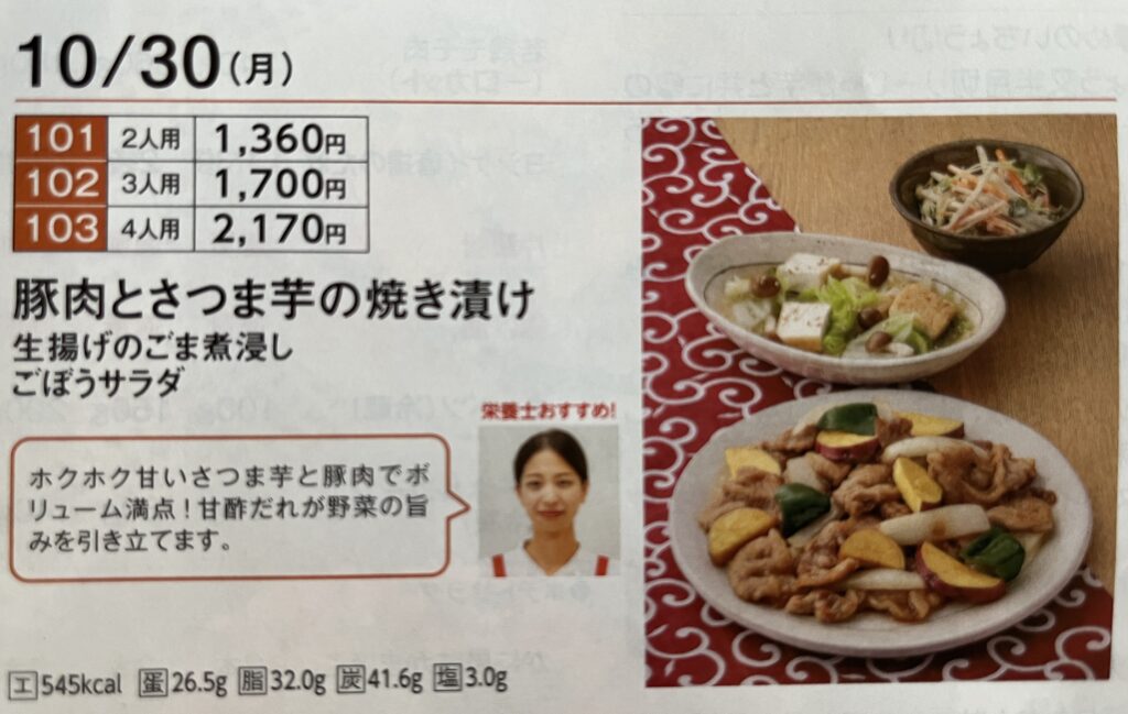 メニューブック「すまいるごはん」から10月30日のメニューを並べてみてみたんだけど、