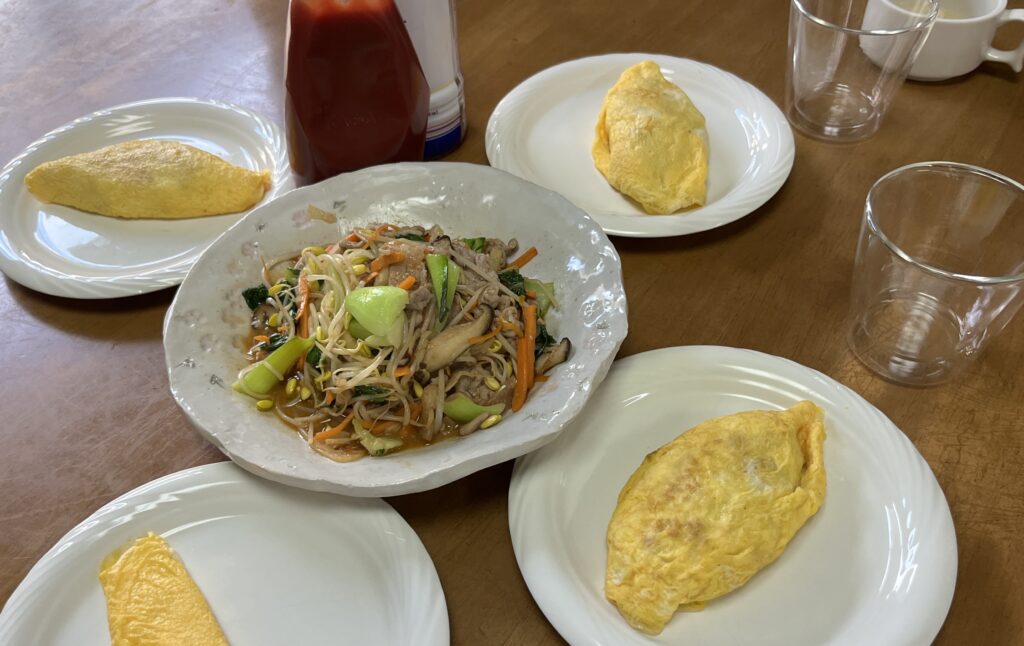 豚肉の中華炒めは人気がないので、メインは小さいオムライスをプラス