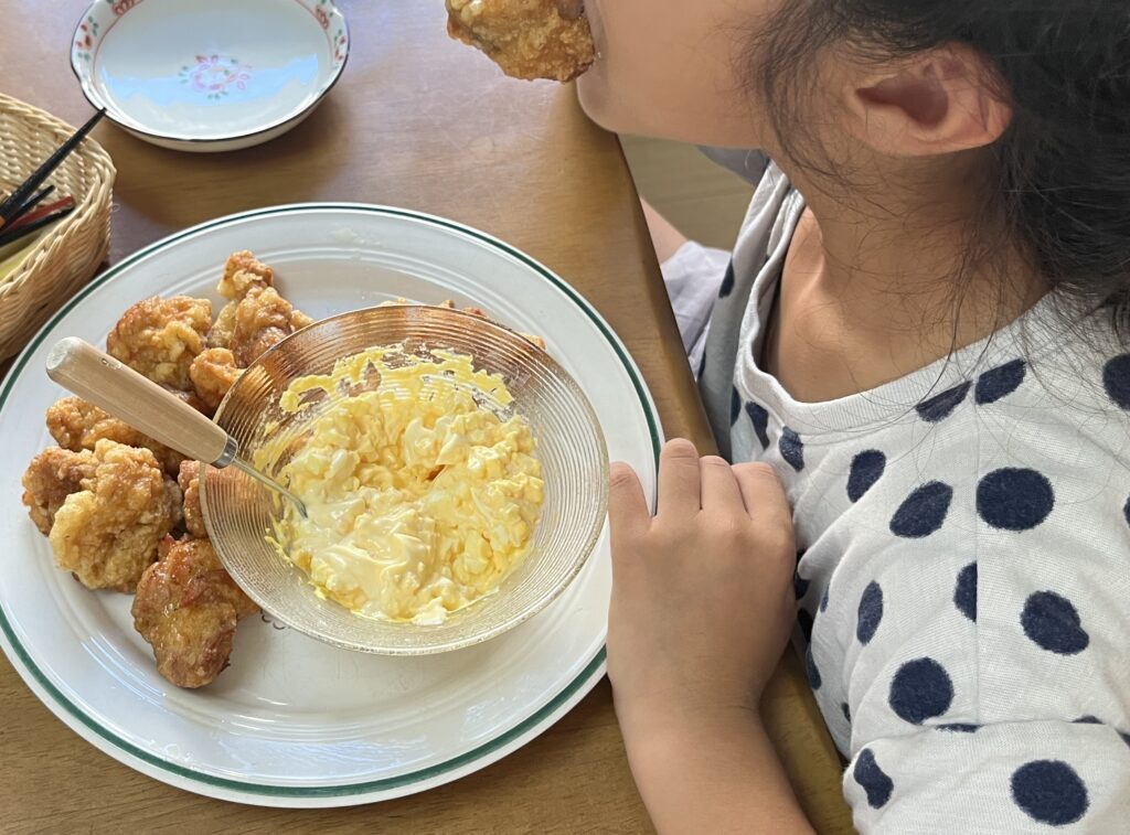 唐揚げ大好きはわかるけど、お行儀わる〜〜(笑)